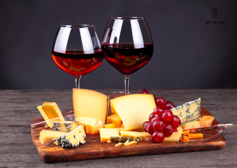 Các loại phô mai, đặc biệt là phô mai cứng và chín như Parmesan, Gouda, Cheddar… Cấu trúc đậm đà và nồng nàn của rượu vang đỏ sẽ làm giảm vị mặn và vị cay của phô mai.